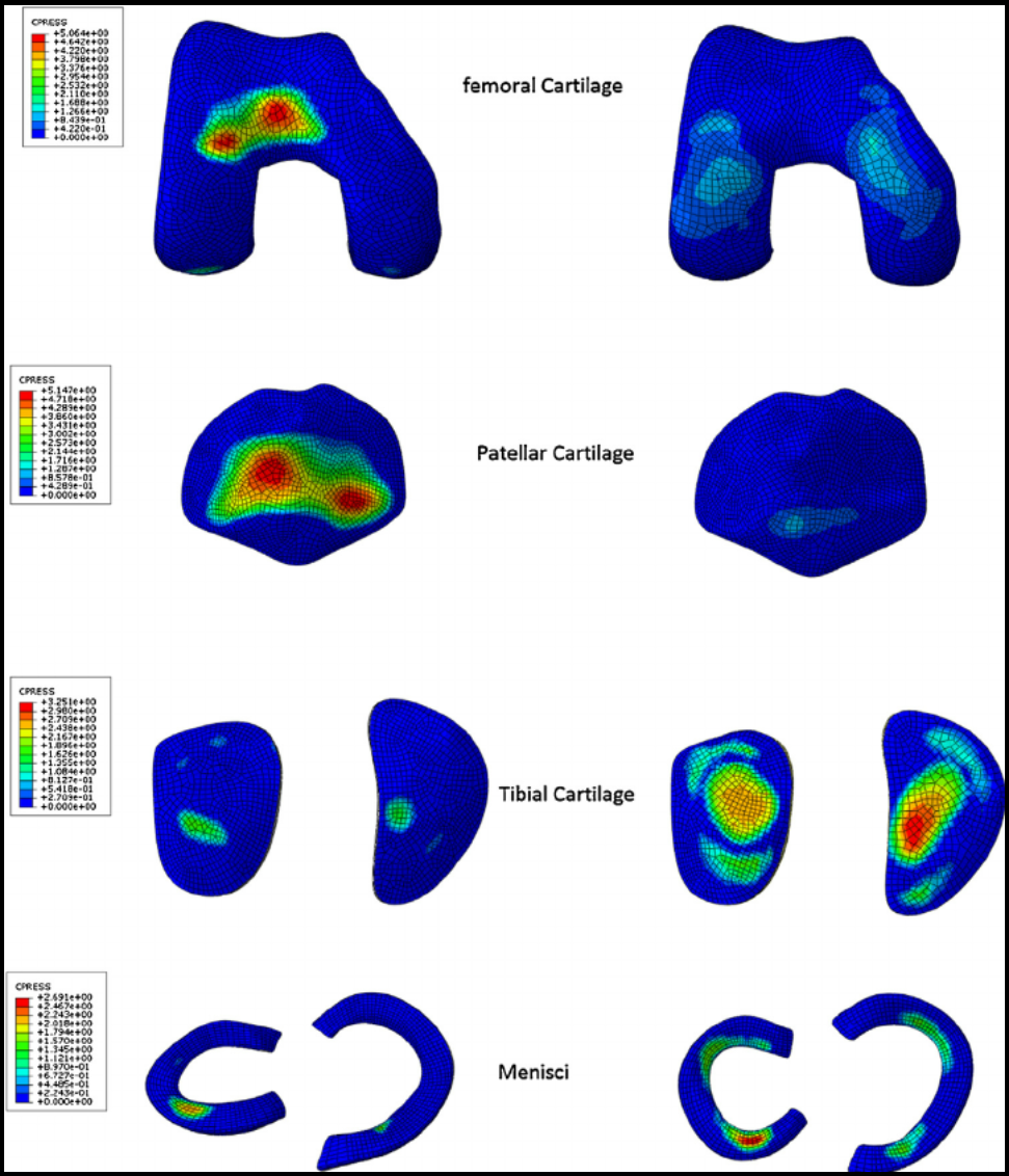 이러한 비정상적인 트래킹은 슬개대퇴 관절의 압력 분포를 왜곡시킵니다. Salsich 등(2003)의 유한요소 분석(finite element analysis)에서 슬개골이 2mm만 외측으로 변위되어도 외측 슬개 관절면의 압력이 45% 증가했습니다.