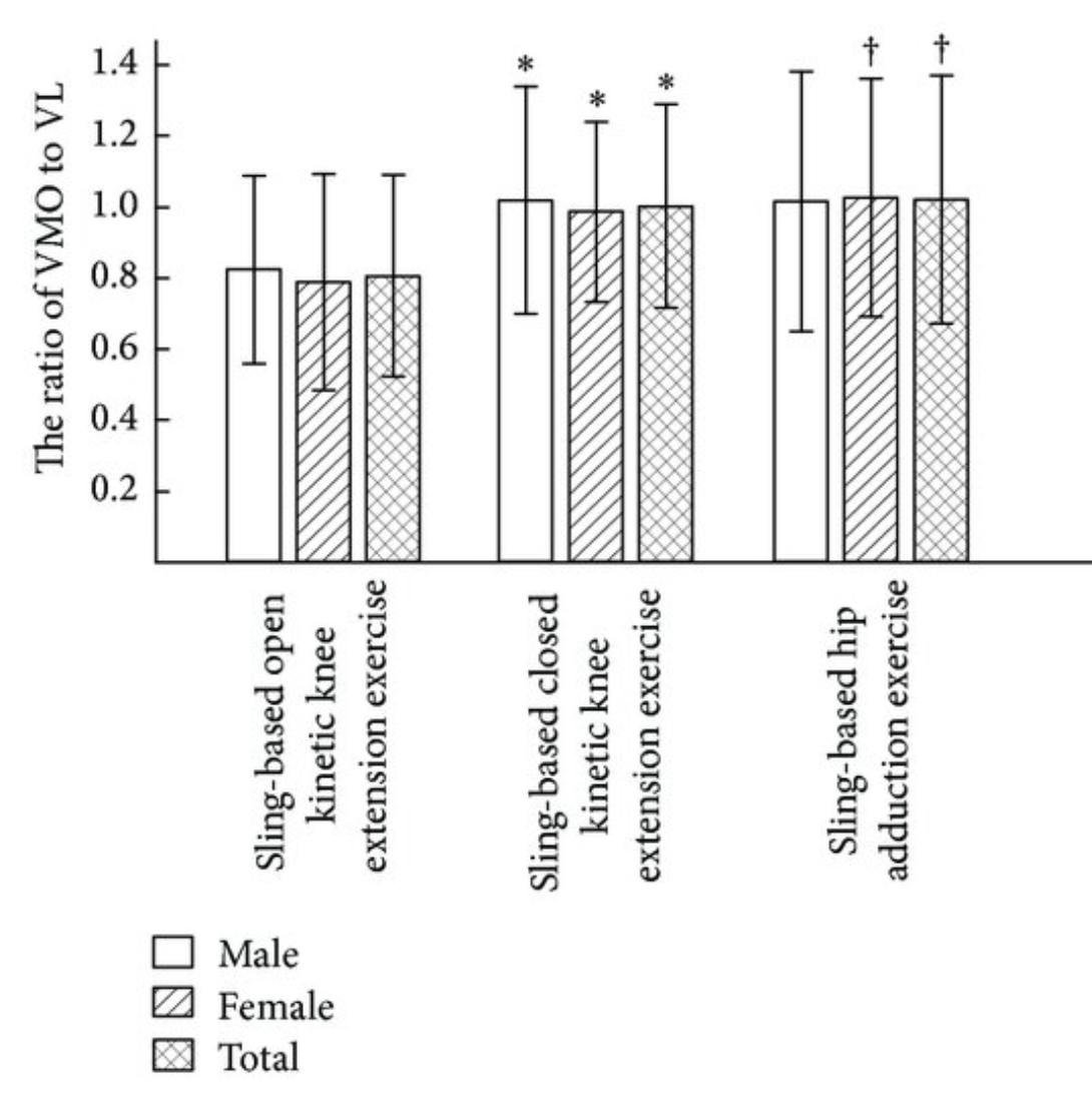 Tang 등(2001)의 비교 연구에서 다음 운동들의 VMO 선택적 활성화 효과가 검증되었습니다. 터미널 니 익스텐션(TKE, 마지막 15도 신전 구간)은 VMO를 VL보다 1.4배 더 활성화시켰고, 스트레이트 레그 레이즈(무릎을 완전히 편 상태에서 다리 들기)는 VMO 근력을 선택적으로 향상시켰으며, 월 스쿼트(벽에 기대어 하는 스쿼트, 0-60도 범위)는 기능적 트래킹 패턴을 개선했습니다.