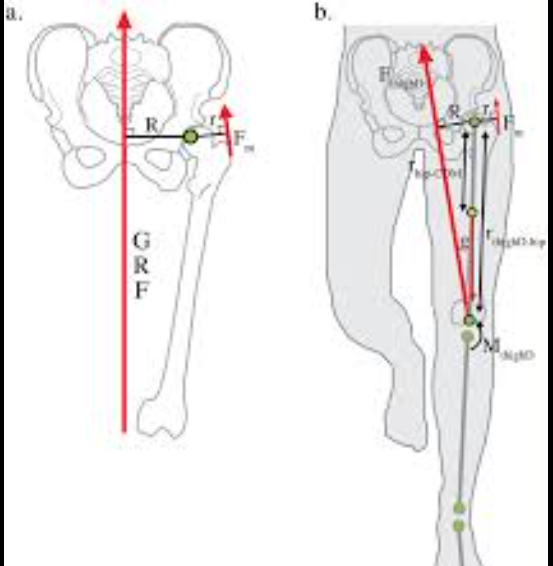 고관절(hip joint)은 구상 관절(ball-and-socket joint)로 3개 평면에서 움직임이 가능하며, 대퇴골(femur)의 위치와 방향을 제어합니다. 이 제어는 무릎의 정렬과 슬개골의 트래킹에 직접적 영향을 미칩니다.